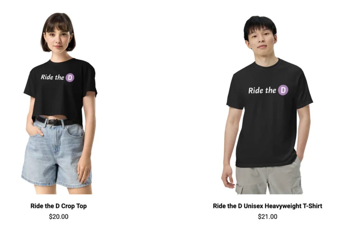But that may be changing. When a Reddit user mocked up a ‘Ride the D’ shirt when the D line extension was announced. Metro saw it, credited the source, made the shirt, and watched it quickly sell out. Suddenly people who had never thought twice about transit were proud to be associated with it. Metro didn’t solve the problem of belonging through infrastructure. They solved it by letting the community in on the joke. Or as my colleague Leezel Tanglao describes it, ‘if you know, you know.”